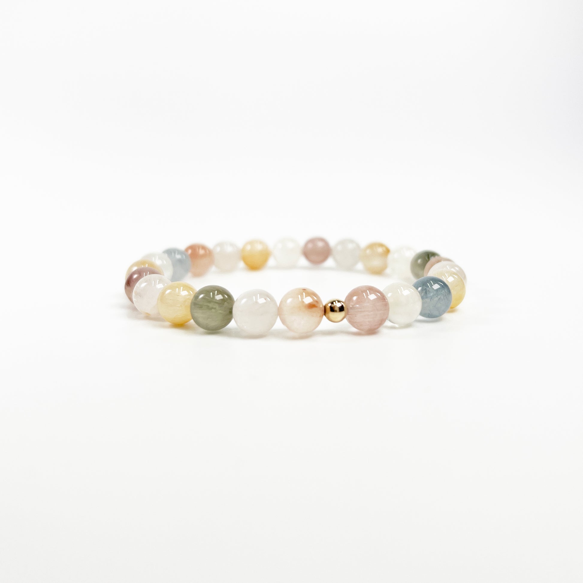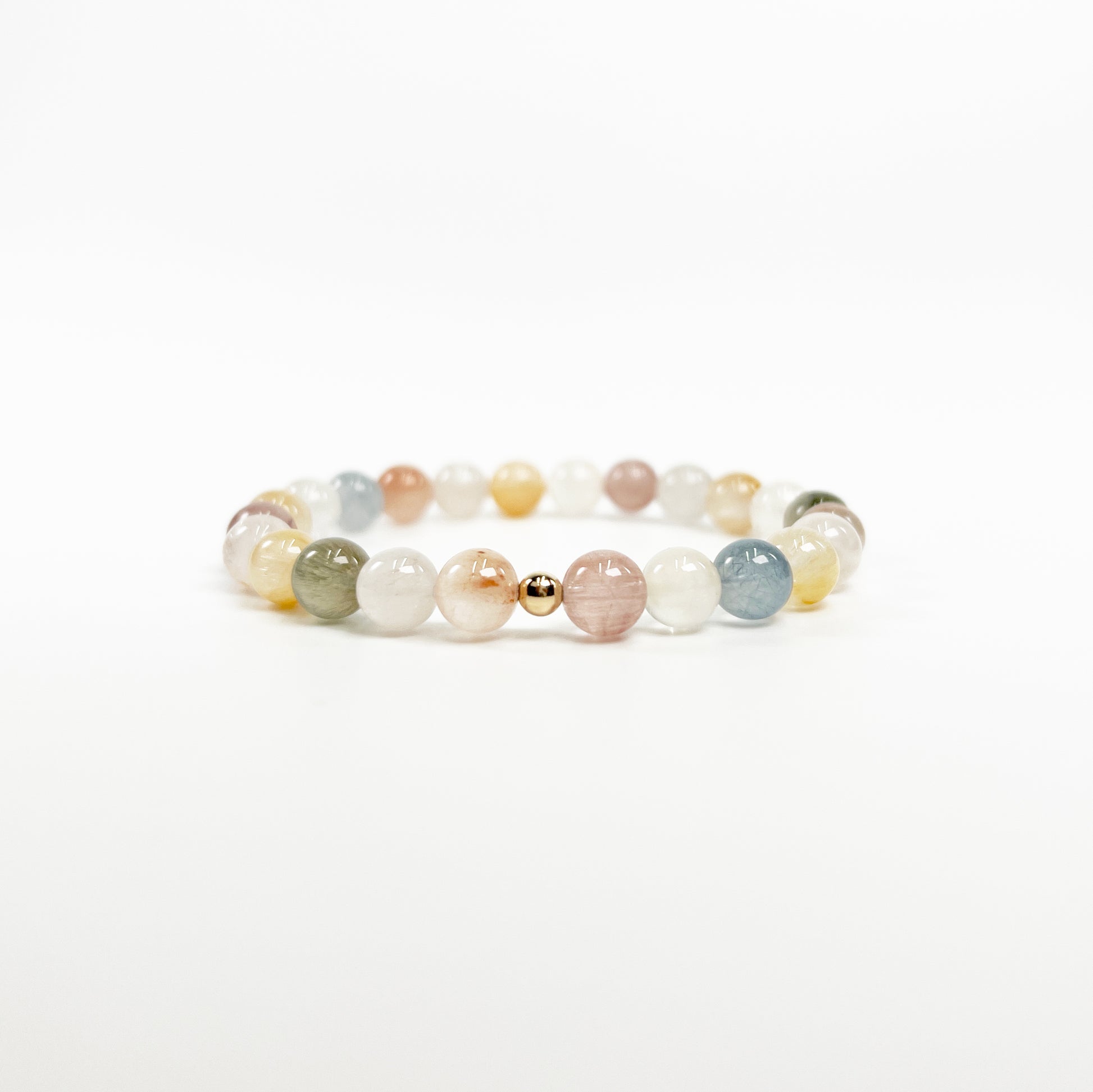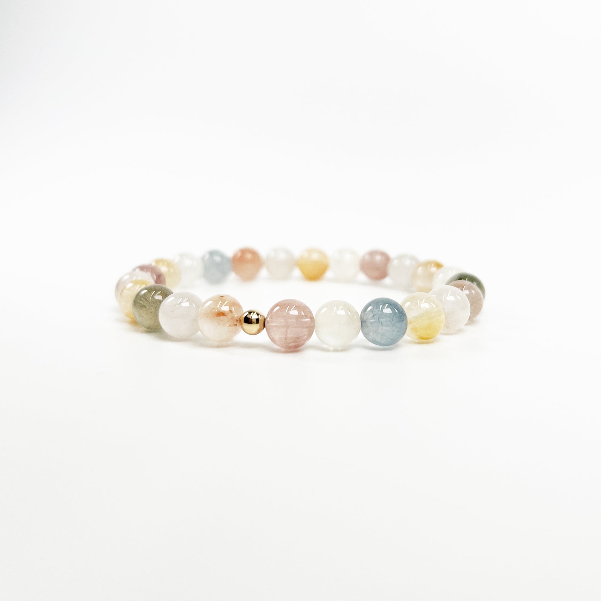 Prismatic Light Rabbit Hair Quartz Bracelet with 18K Gold Accent
